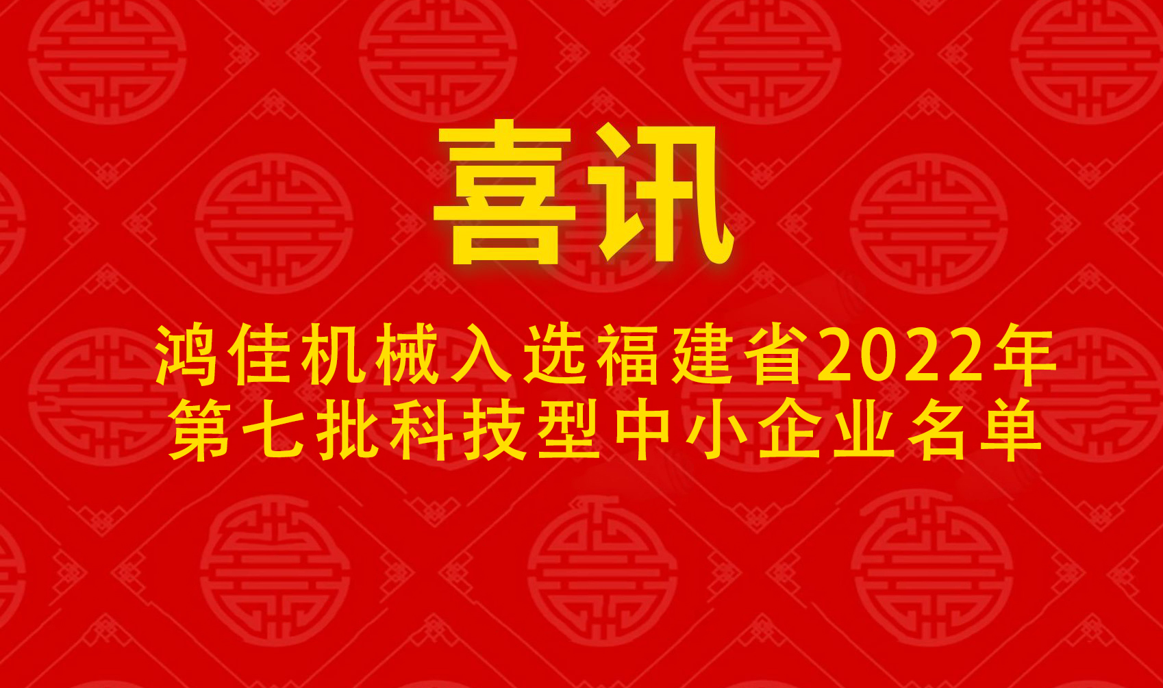 喜訊 | 鴻佳機械入選福建省2022年第七批科技型中小企業(yè)名單